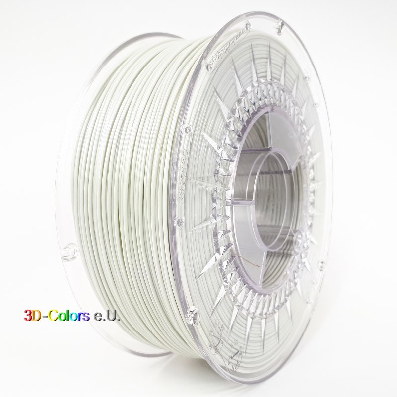 Filament PET-G - ein thermoplastisches Polymer aus der Gruppe der Polyester in Form von Faser, die für den 3D-Druck nach der FFF-Methode verwendet wird. Filament auf eine Spule gewickelt und mit einem Feuchtigkeitsabsorber vakuumverpackt. Die Spule enthält 1 kg Nettomaterial.